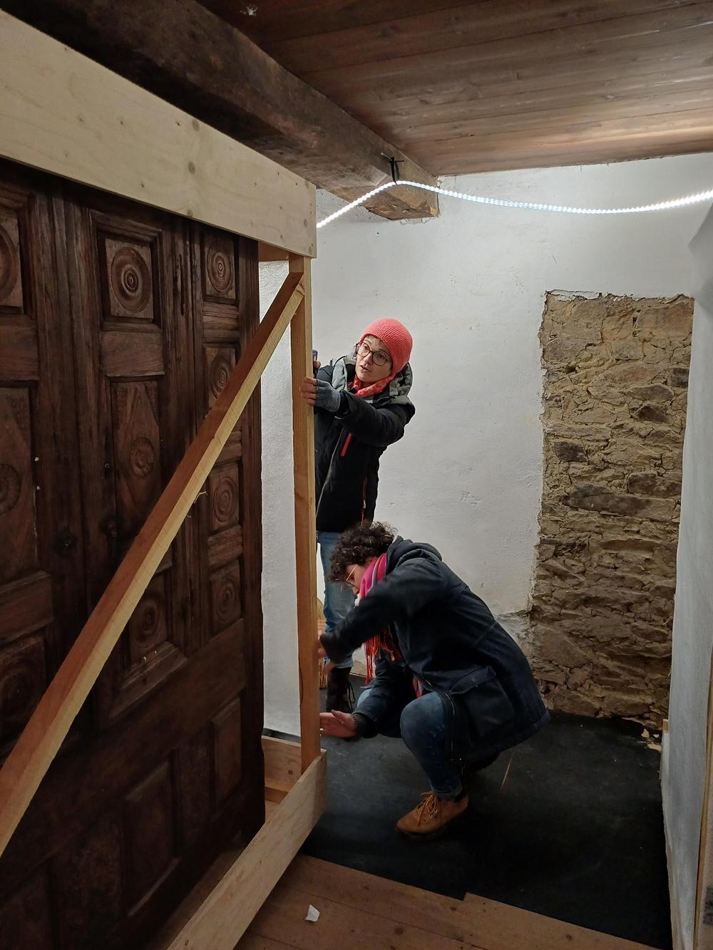 Les travaux avancent dans le village de Kerouat, l'un des deux sites de l'écomusée des Monts d'Arrée qui rouvrira au printemps prochain. En novembre 2025, l'équipe de régie de la réserve muséographique départementale a procédé au déplacement et à la protection sur site d’un lit-clos pour permettre aux menuisiers et maçons de faire leur travail.