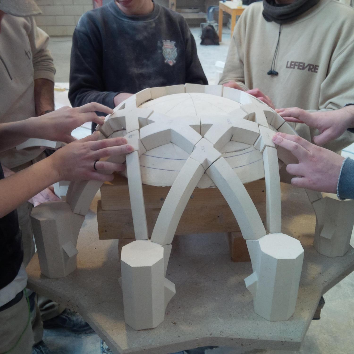 Les espaces du Musée se transforment pour faire découvrir les nombreux domaines de création artisanale : taille de pierre avec Philippe Cornélis, vitrail avec l’atelier Le Verre Opaline, broderie avec le groupe des Bruyères, illustration d’architecture avec Nolwenn Hamelin et sculpture sur bois avec Hervé Lorant.